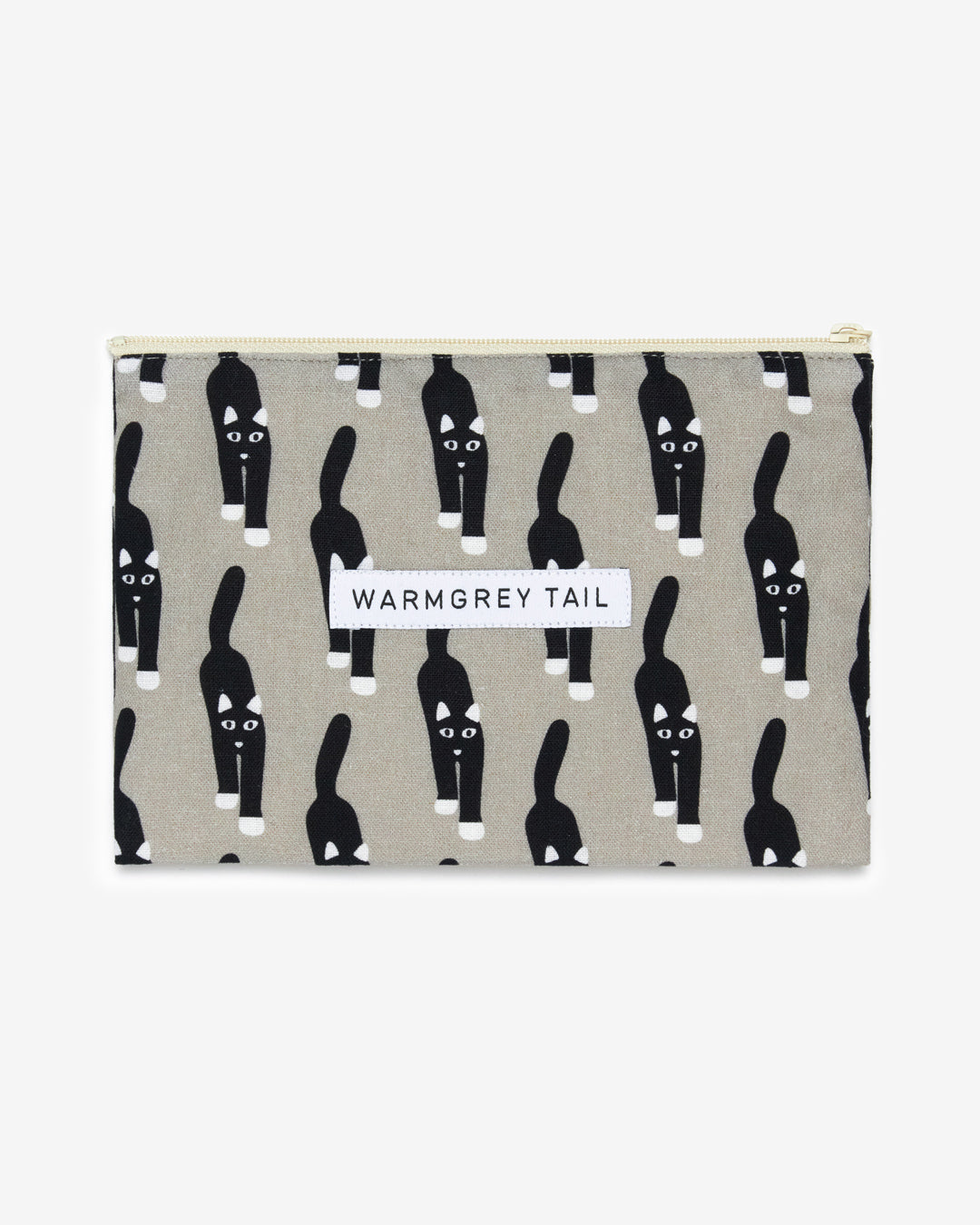キャットカミングフラットポーチ - グレー (2サイズ)