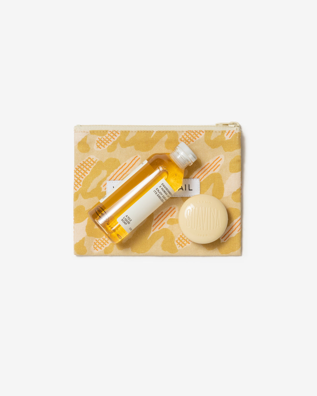 キャットカミングレーベル フラットポーチ - キャメル (2サイズ)
