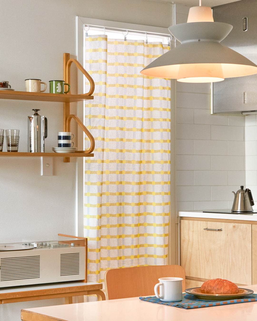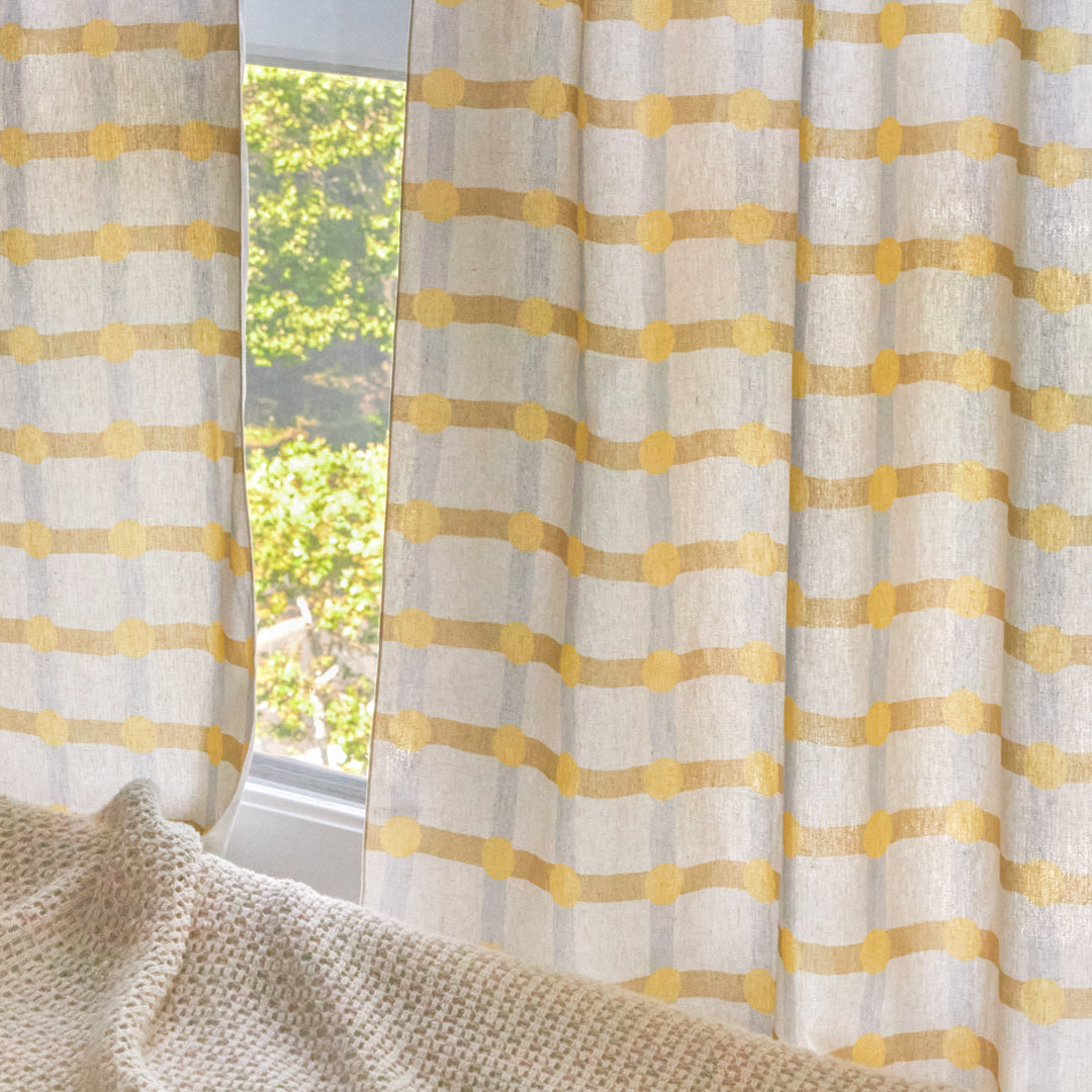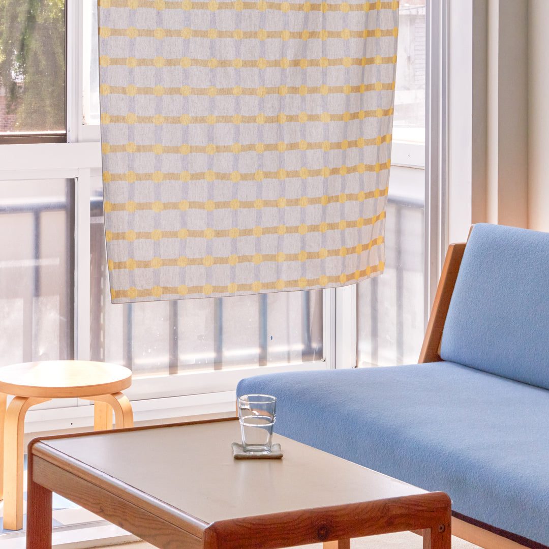 ドットチェック ドアカーテン - アイボリー地にレモン