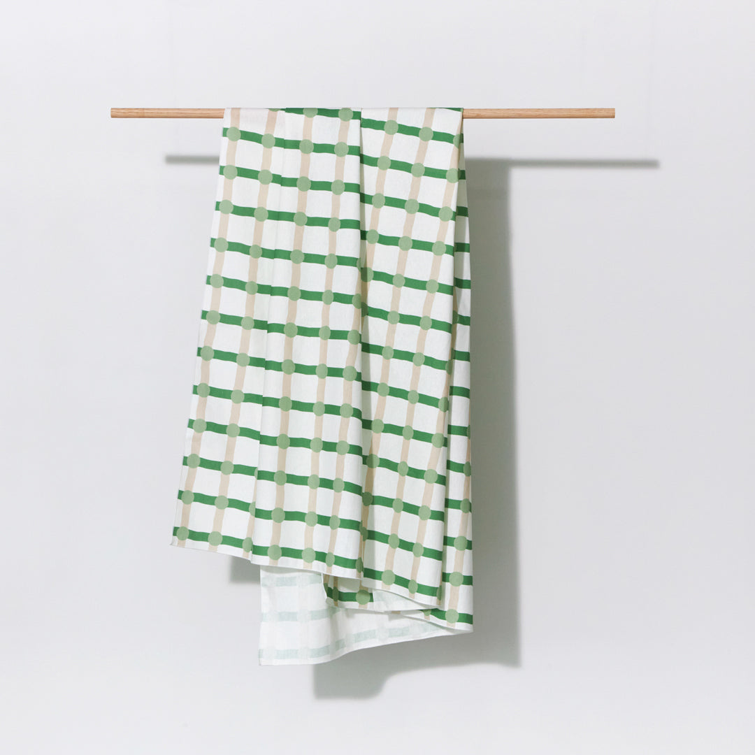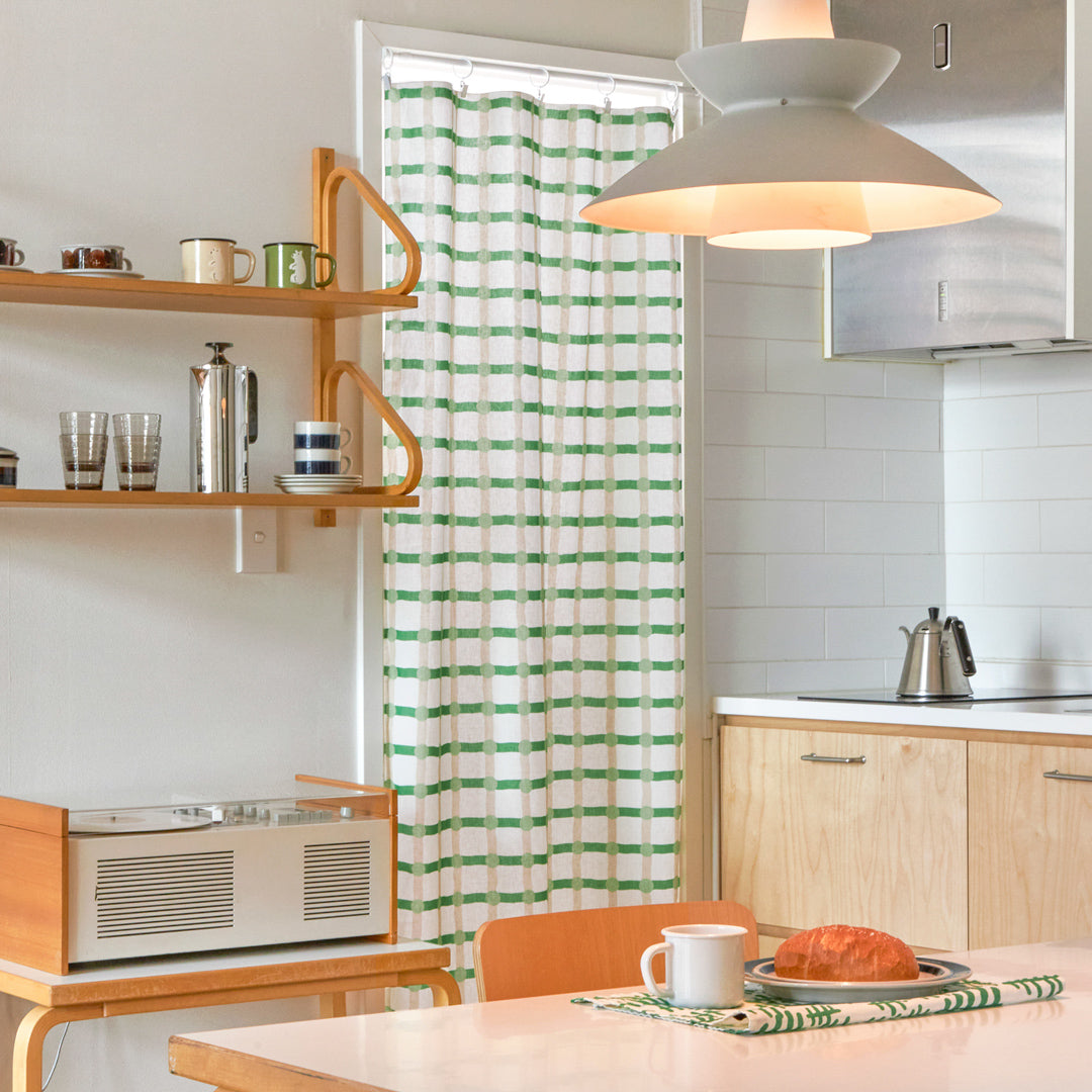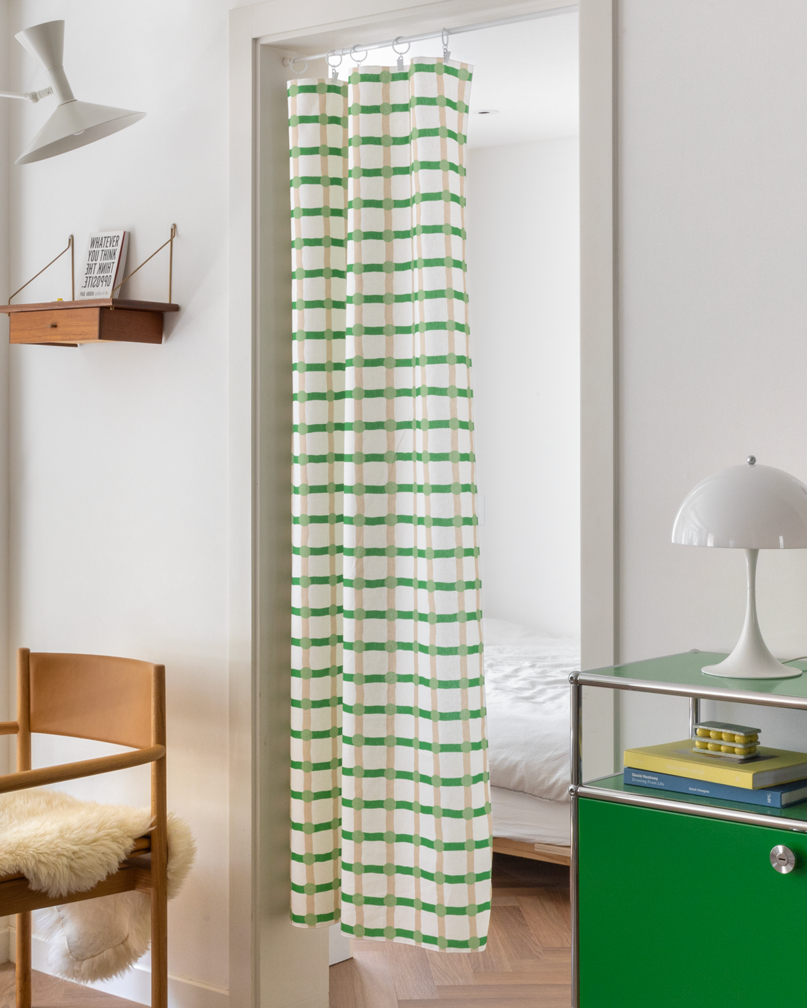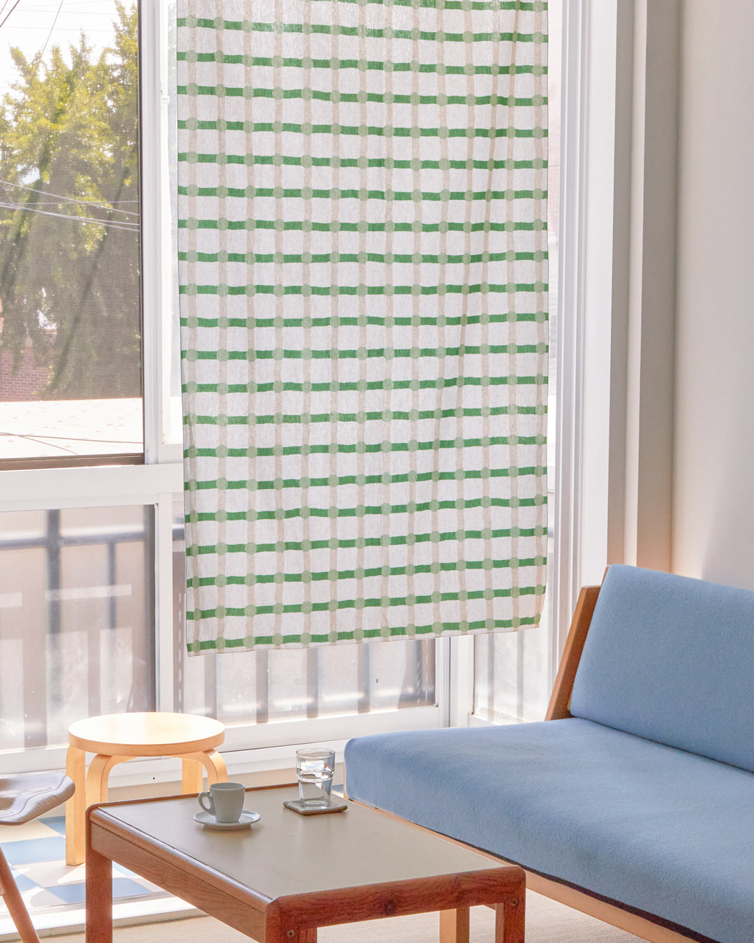 ドットチェック柄ドアカーテン - 淡いグリーンと白