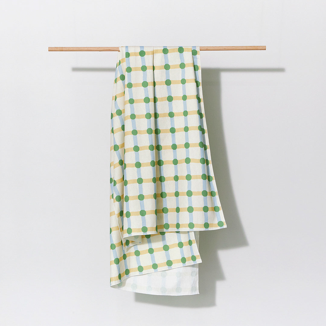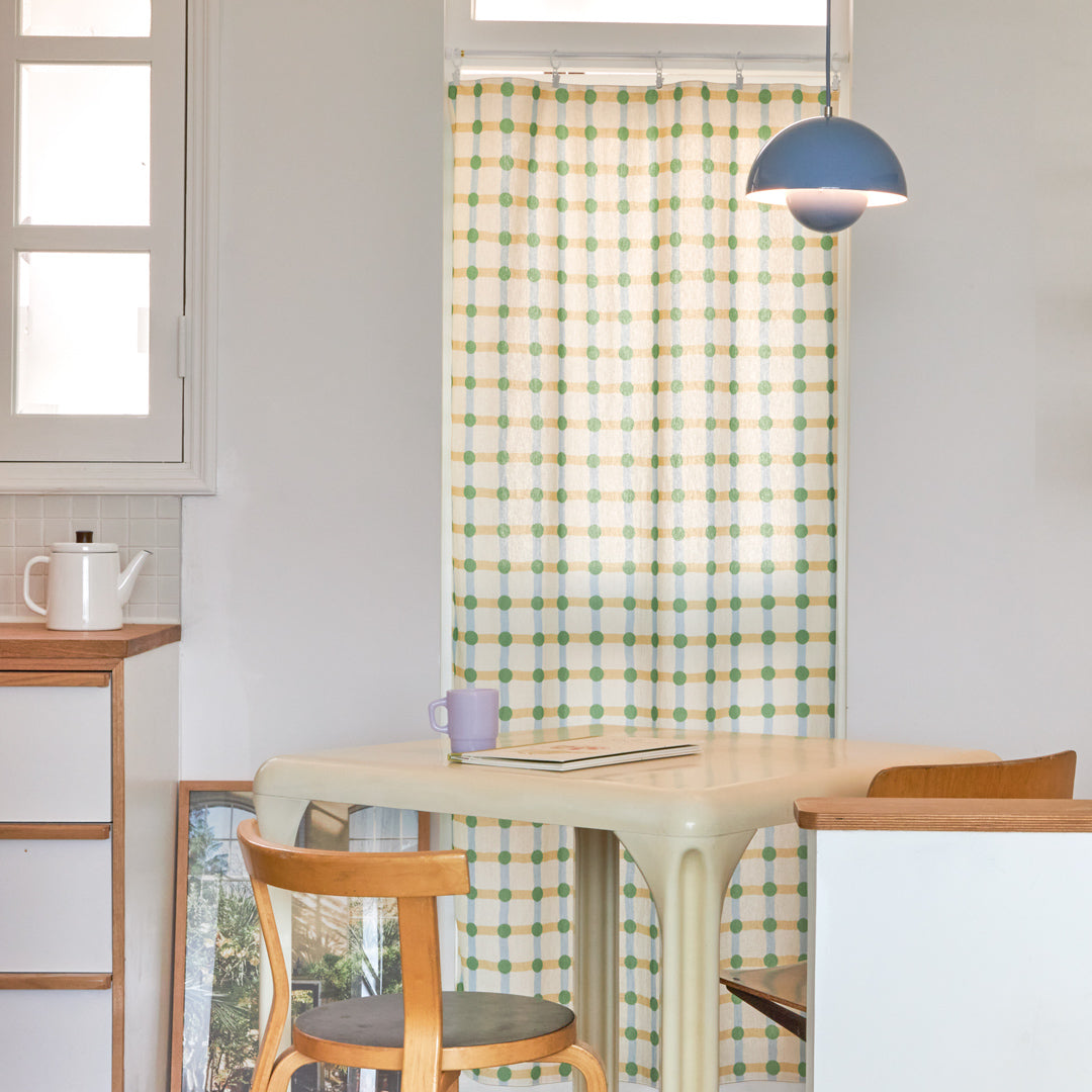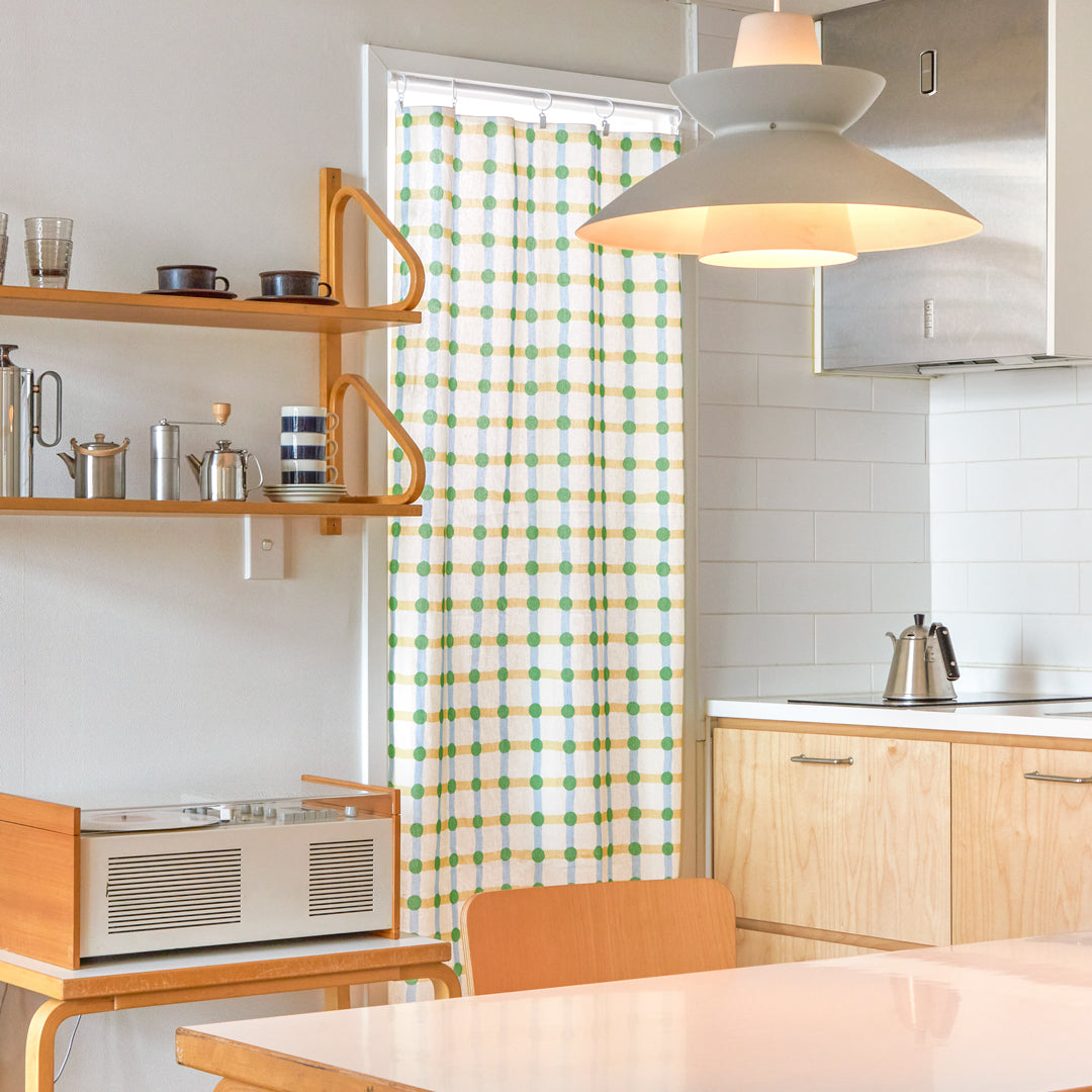 ドットチェック柄ドアカーテン - グリーン×ベージュ