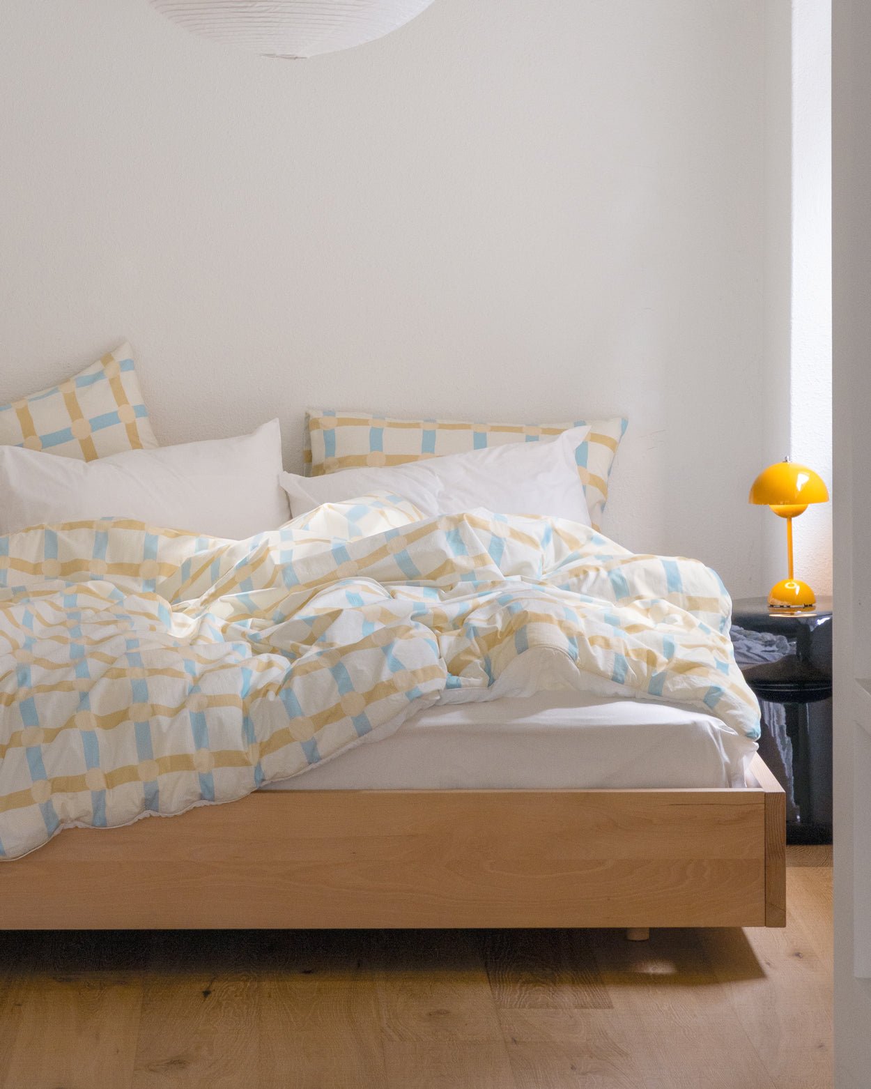 ドットチェック ブルーストライプ ピローケース (2サイズ)