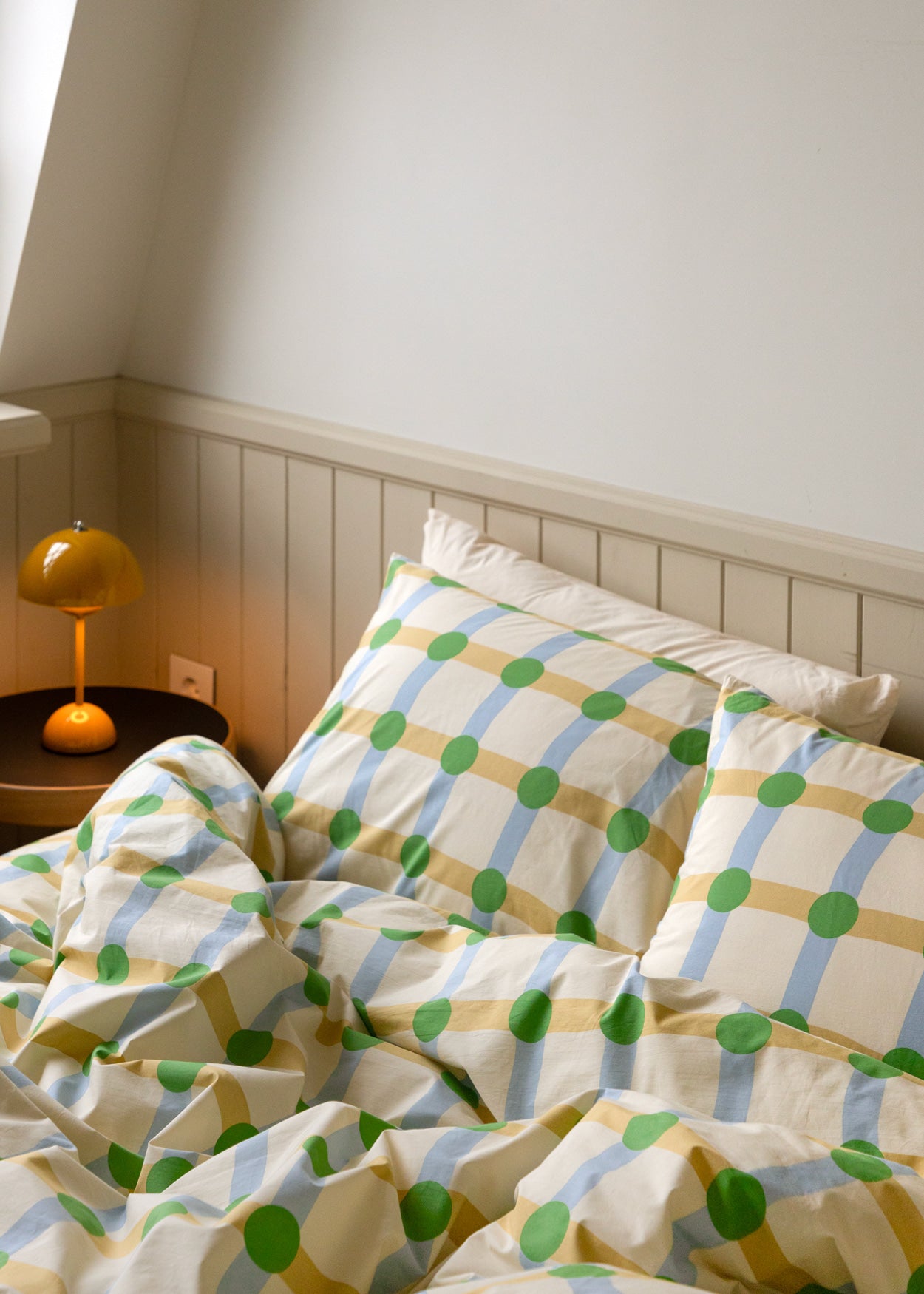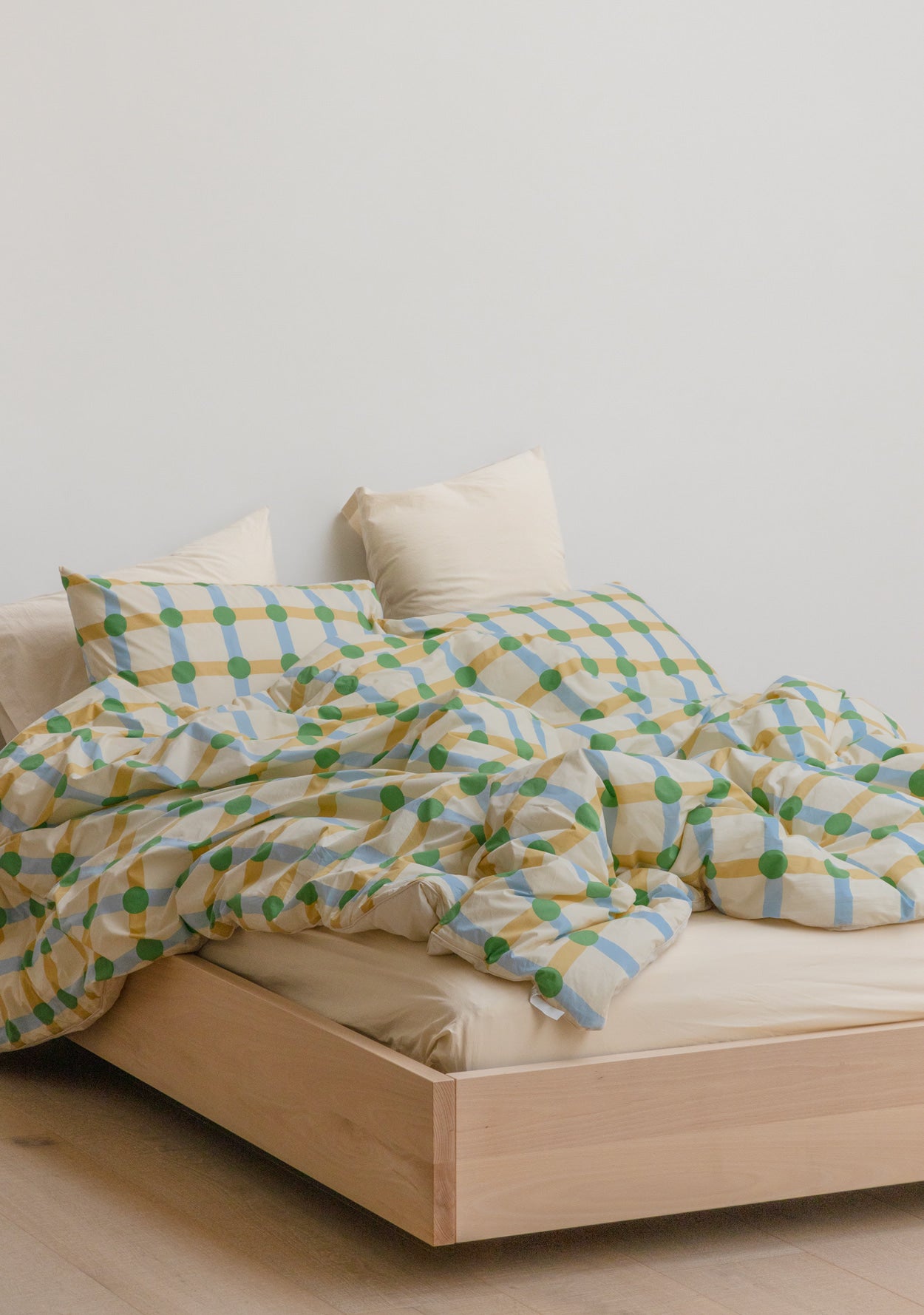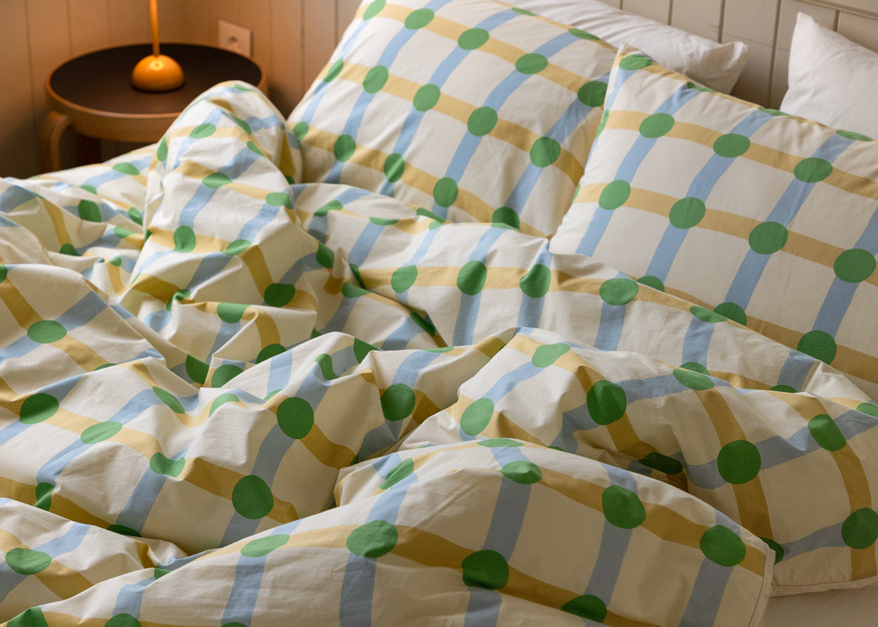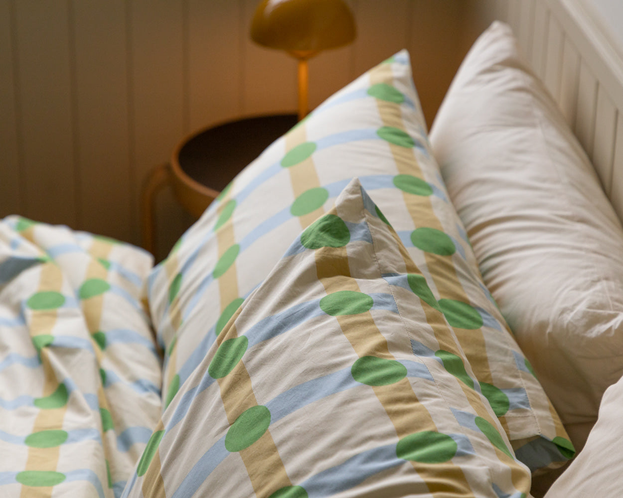 ドットチェックグリーンオンベージュピローケース(2サイズ)