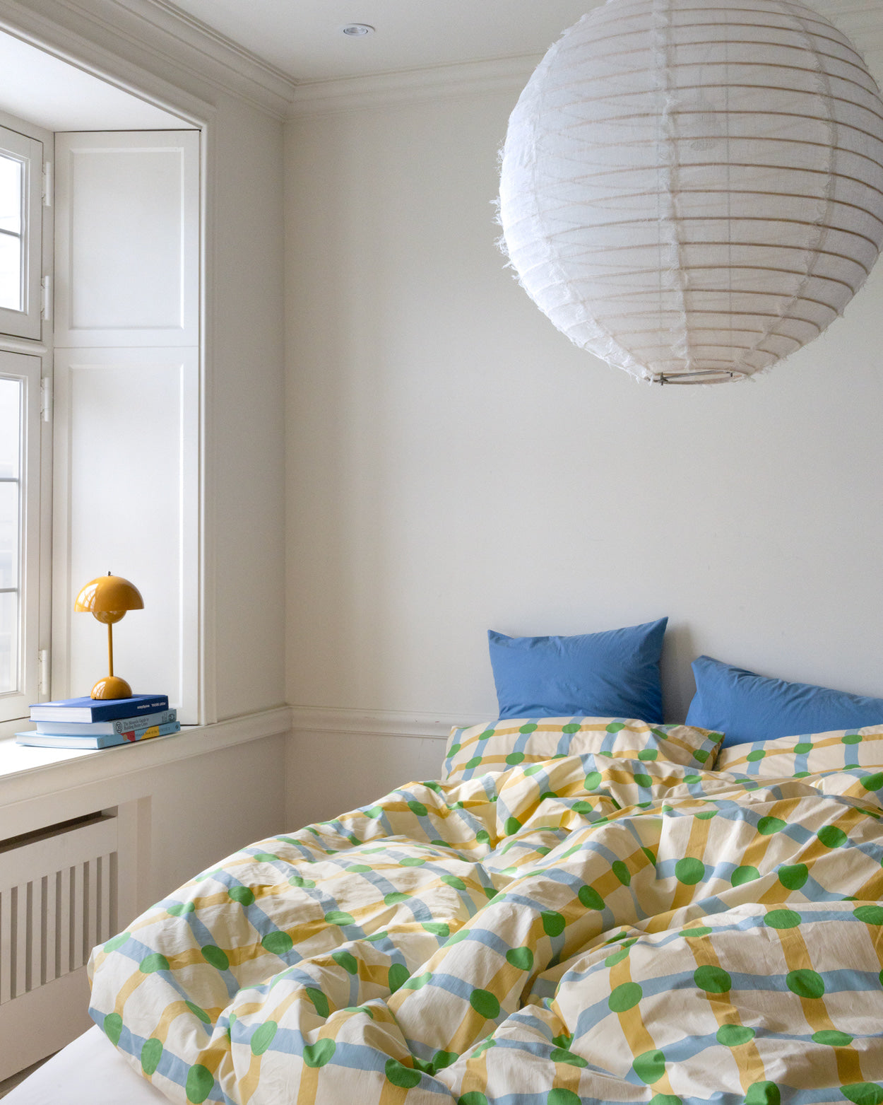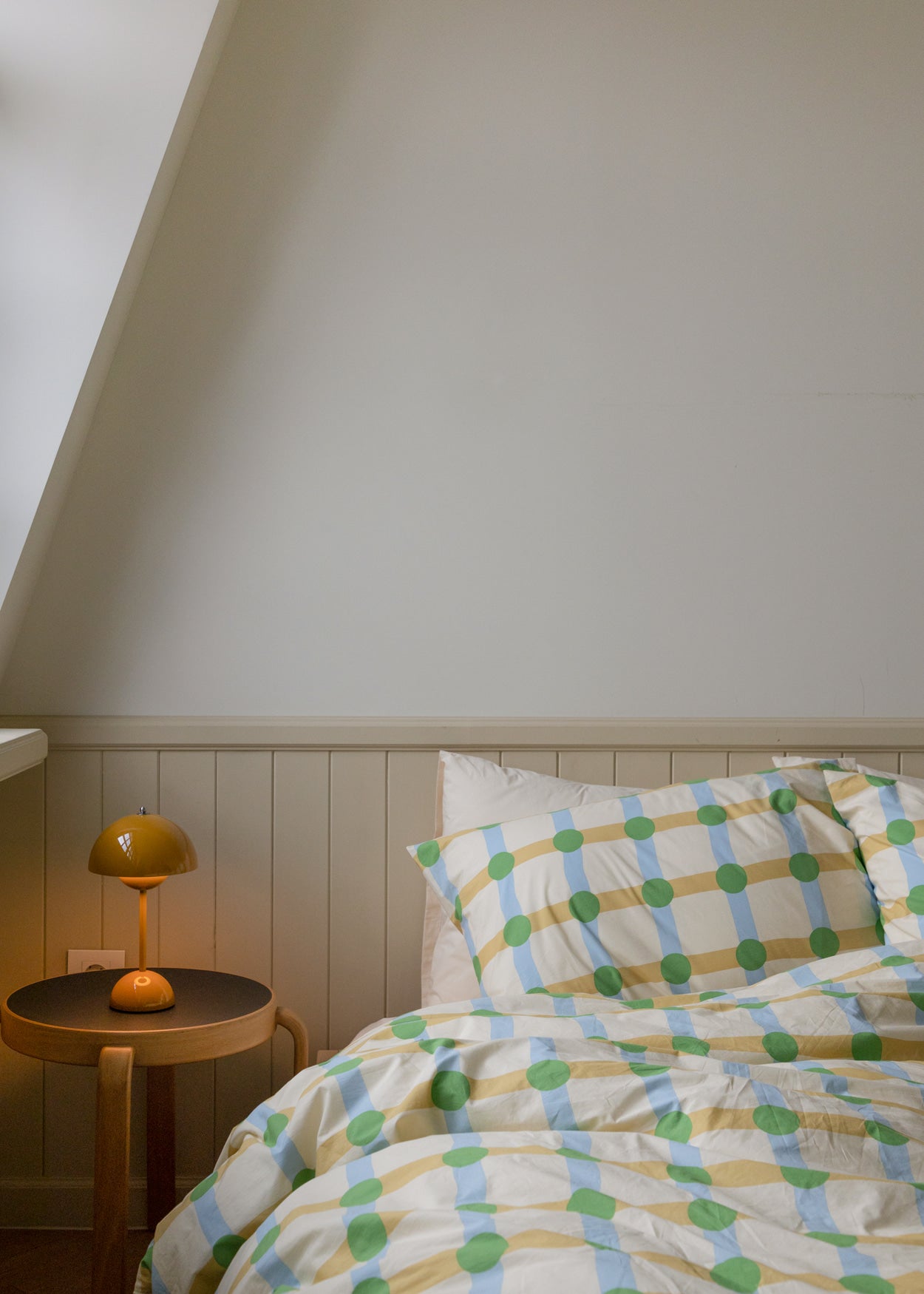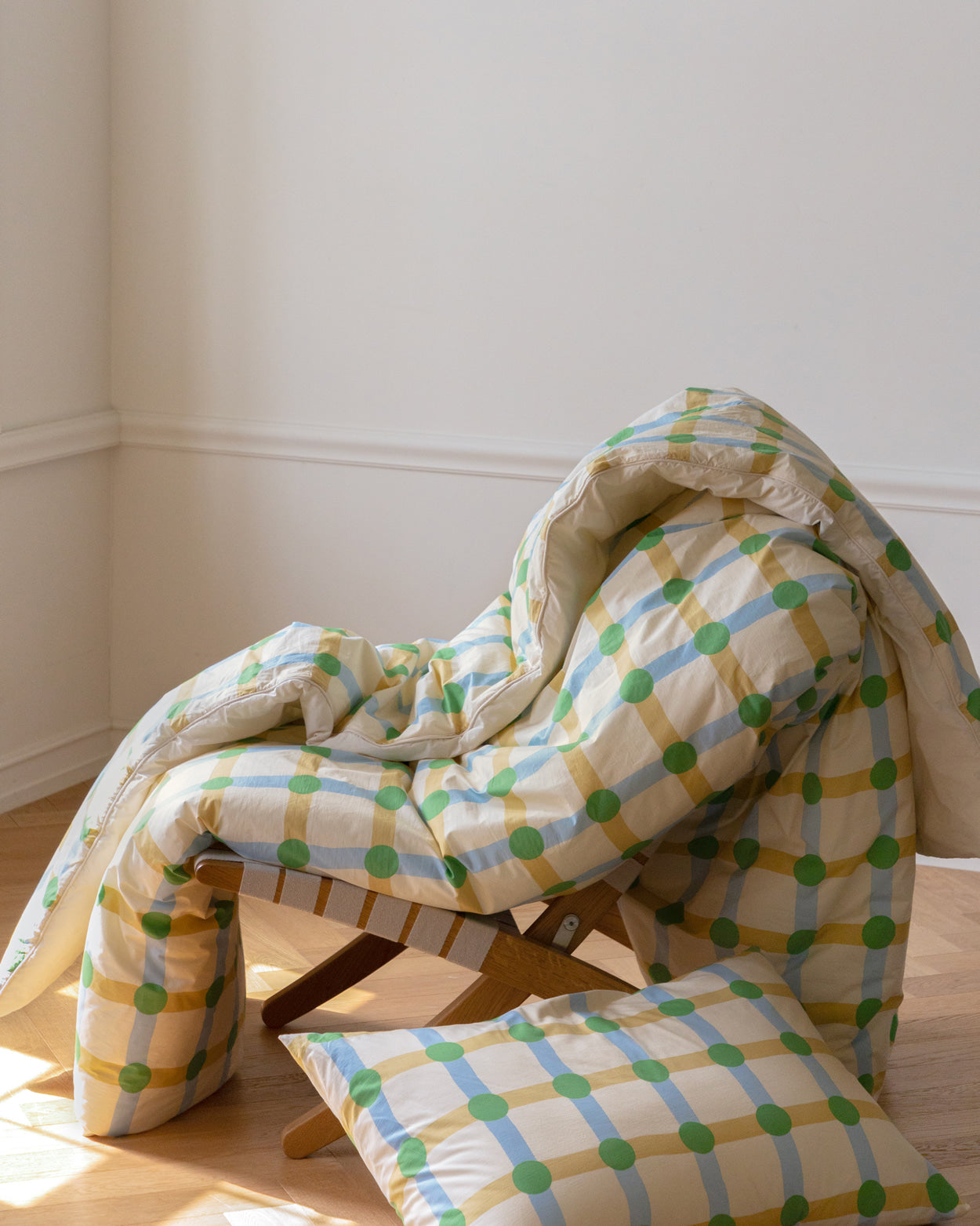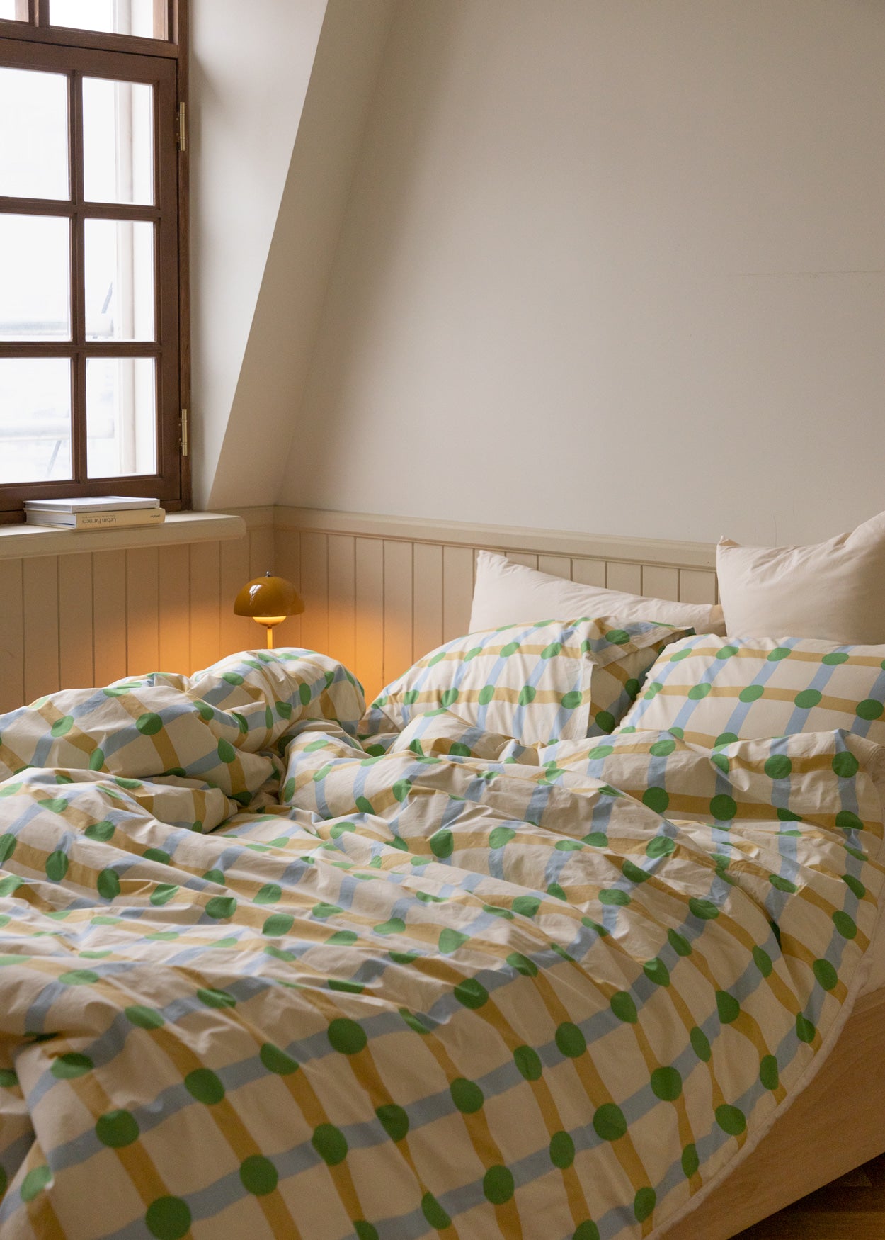 ドットチェックグリーンオンベージュピローケース(2サイズ)