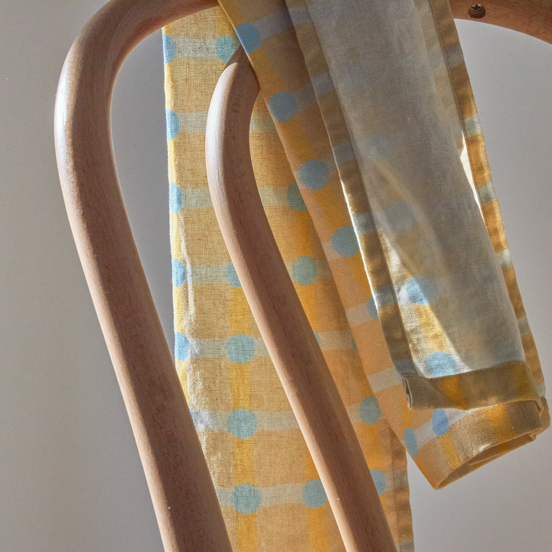 濡れたリネン生地をそのまま干すと生地が伸びてしまう場合がございますので、平らな場所に置いて十分に乾燥させてください。