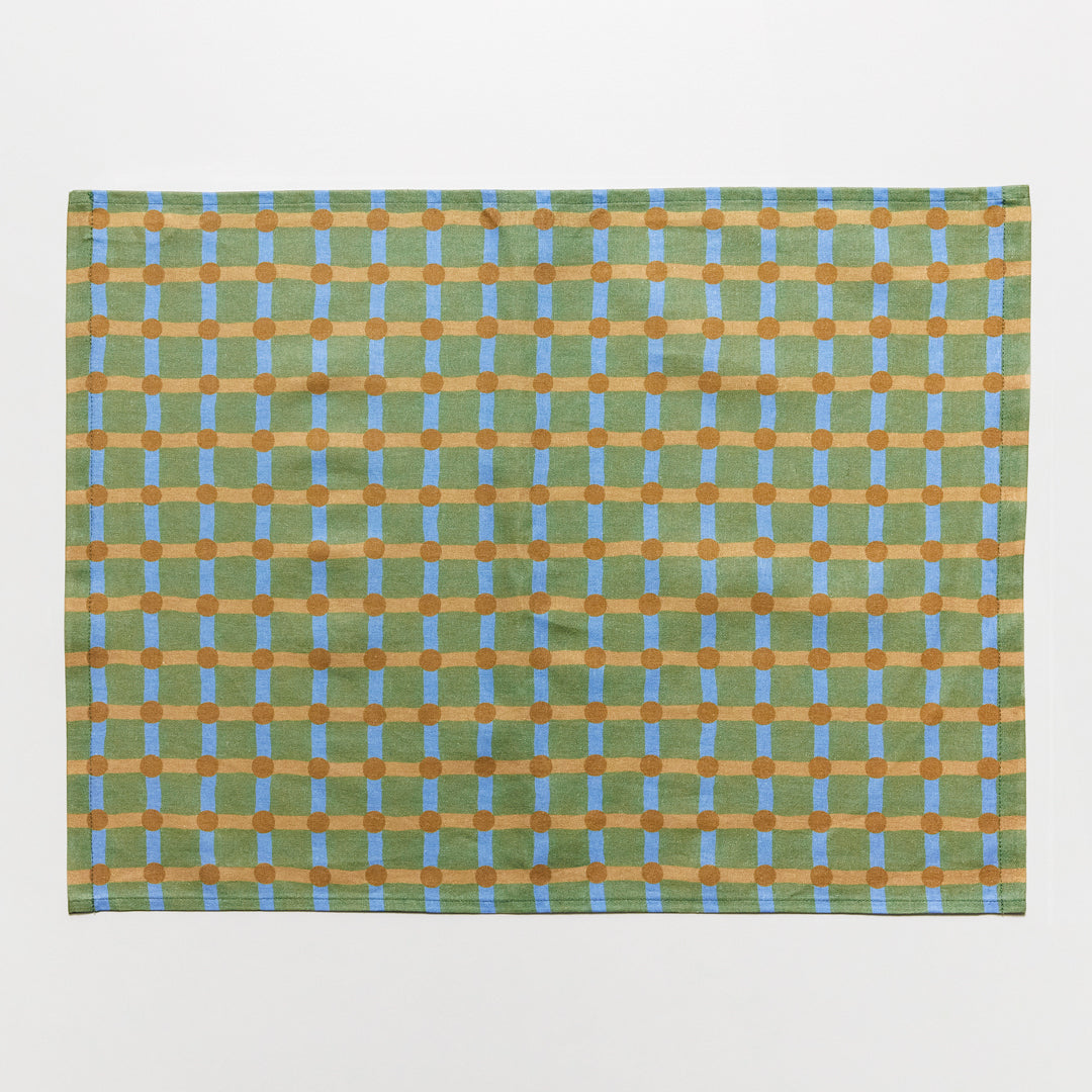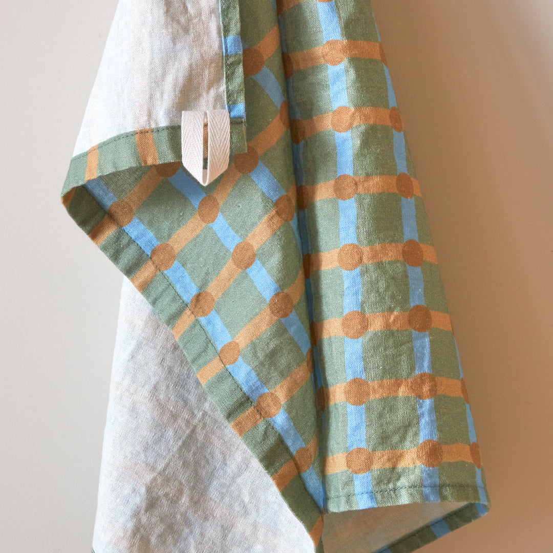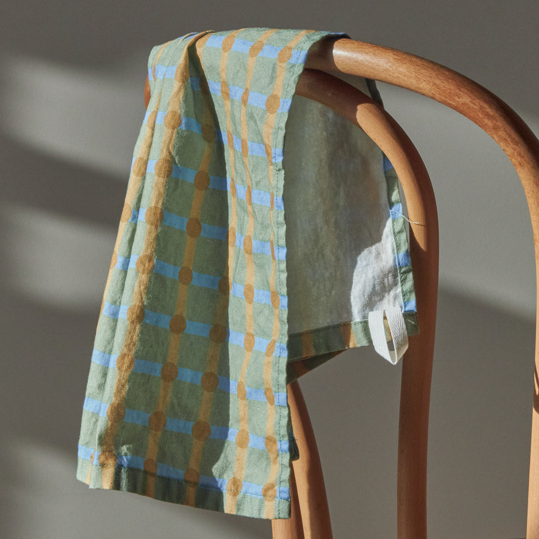 ドットチェック キッチンクロス - ブラウン×カーキ