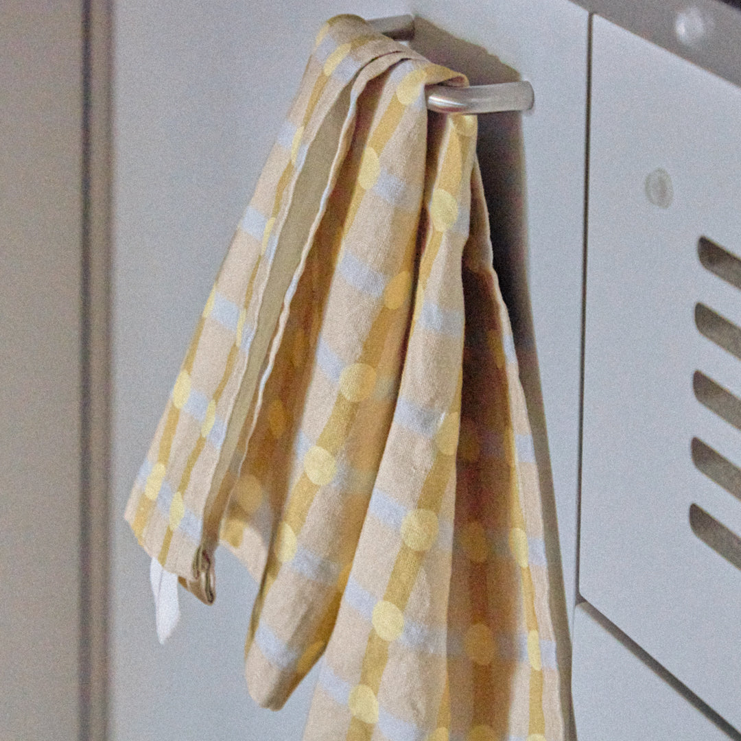 ドットチェックキッチンクロス - レモン×ベージュ