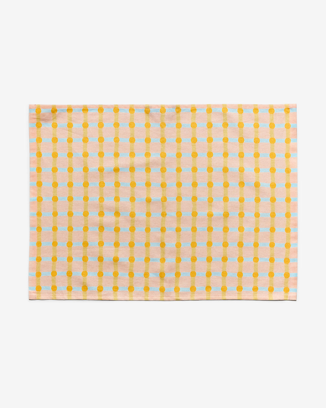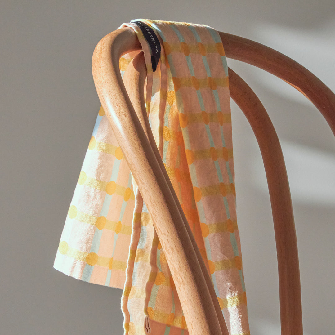 ドットチェックキッチンクロス - オレンジ×ピンク