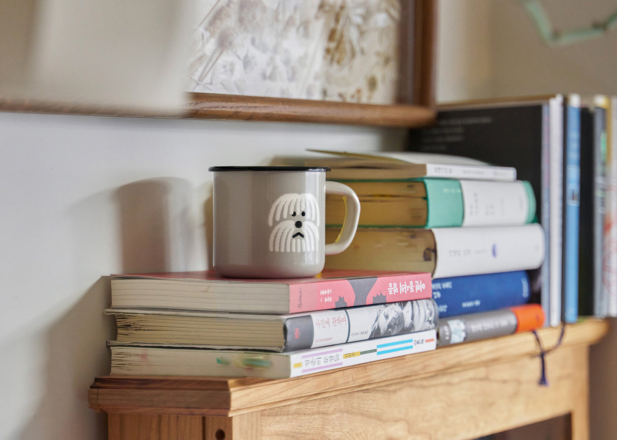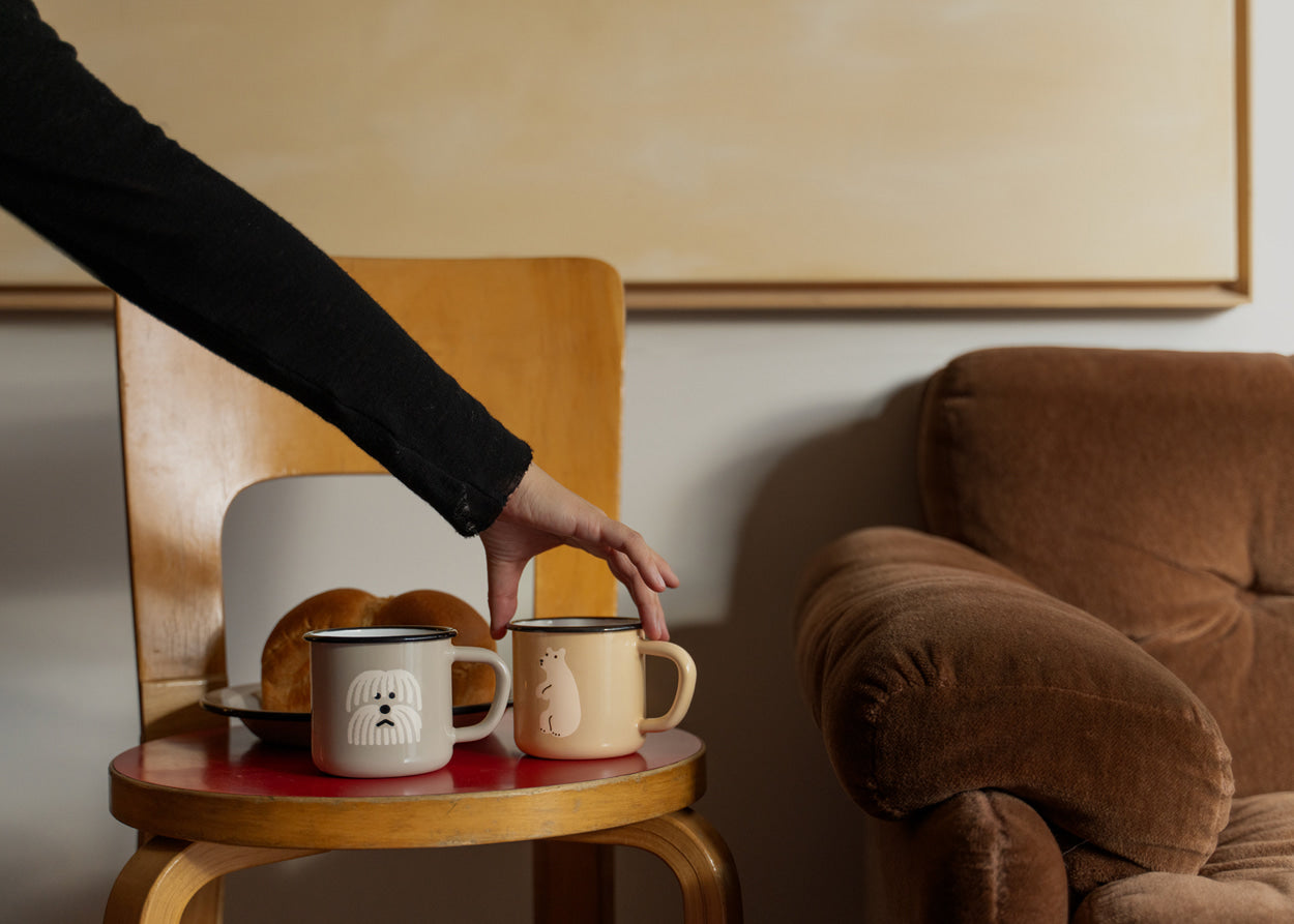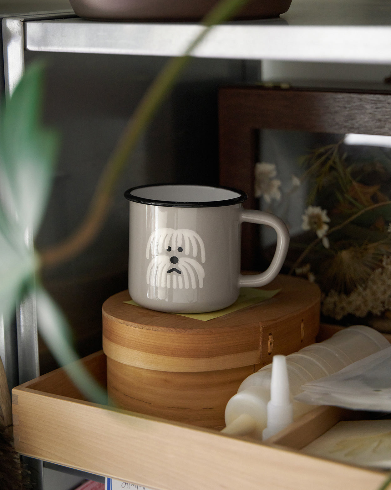 ふわふわ犬 ウォームグレー エナメルマグカップ