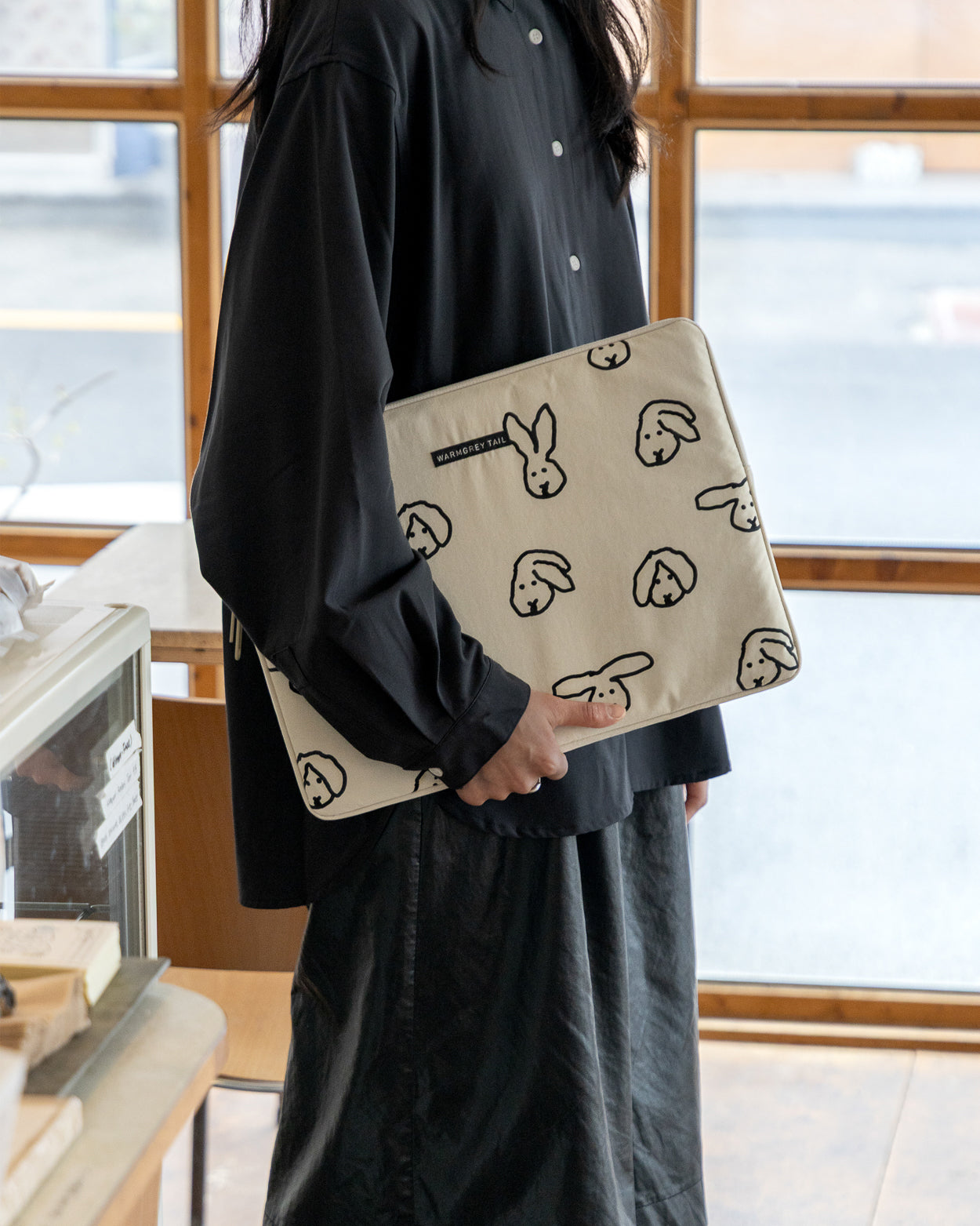 ノートパソコン/タブレット用ナイロンポーチ - バニーバニークリーム