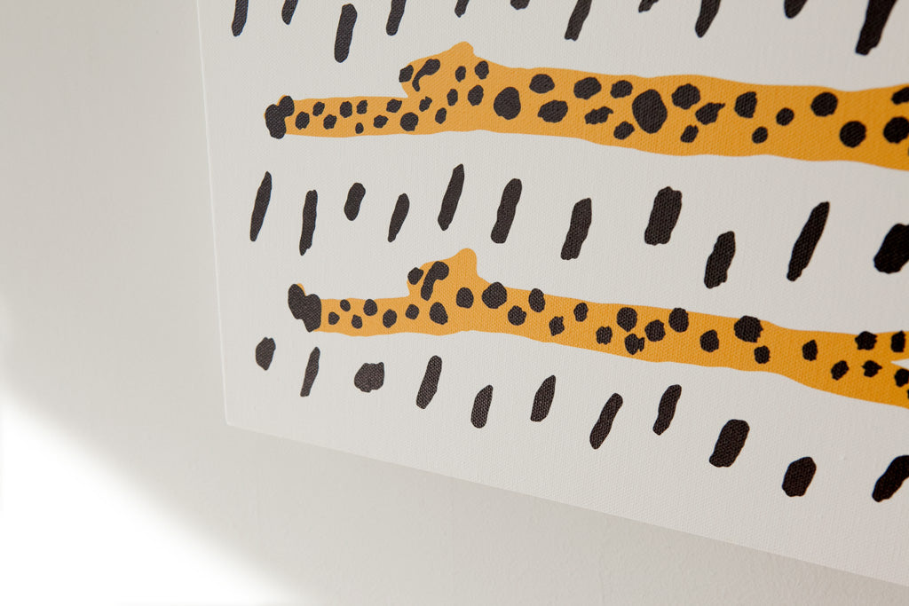 安定して組み立てられた木製フレームに、高品質のキャンバス生地を巻き付けています。